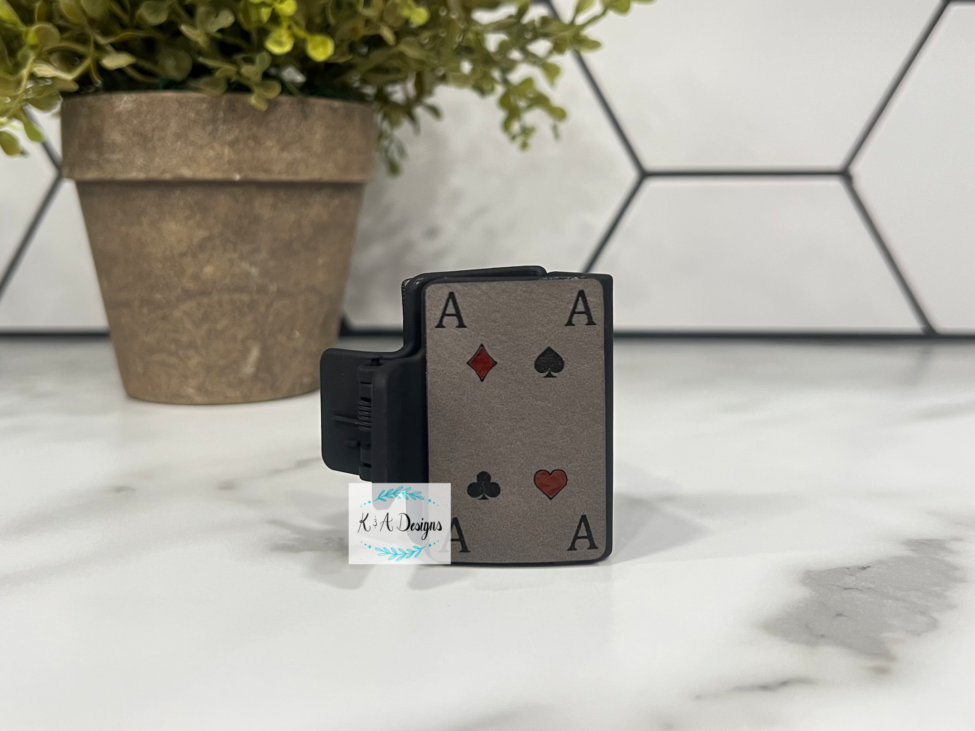 We suggest choosing Bamboo, Gray, Light Brown, Rawhide, or Teal as your leather color to allow the red paint in the hearts and diamonds to be visible. If darker colors are chosen, they will be engraved instead of painted.