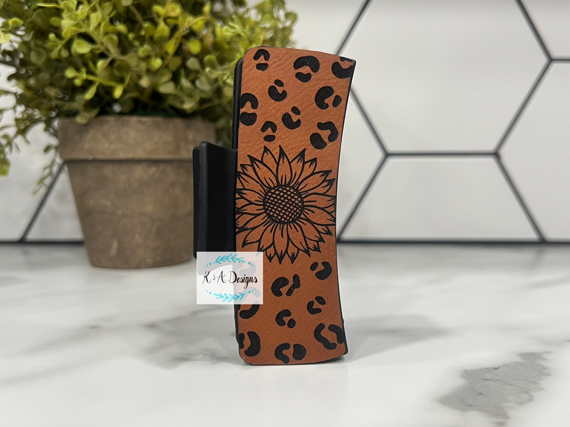 Leopard Sunflower Leather Claw Clip