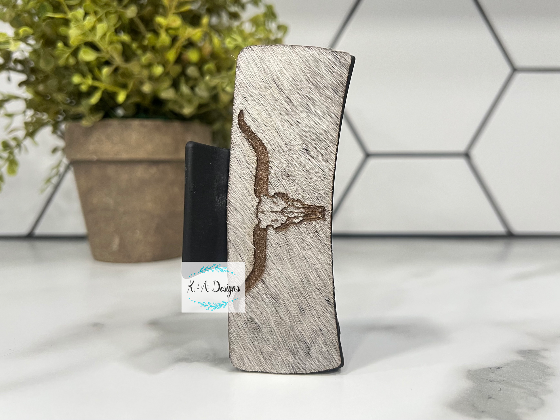We do not suggest choosing this design for a 2” claw clip with black/white cowhide.