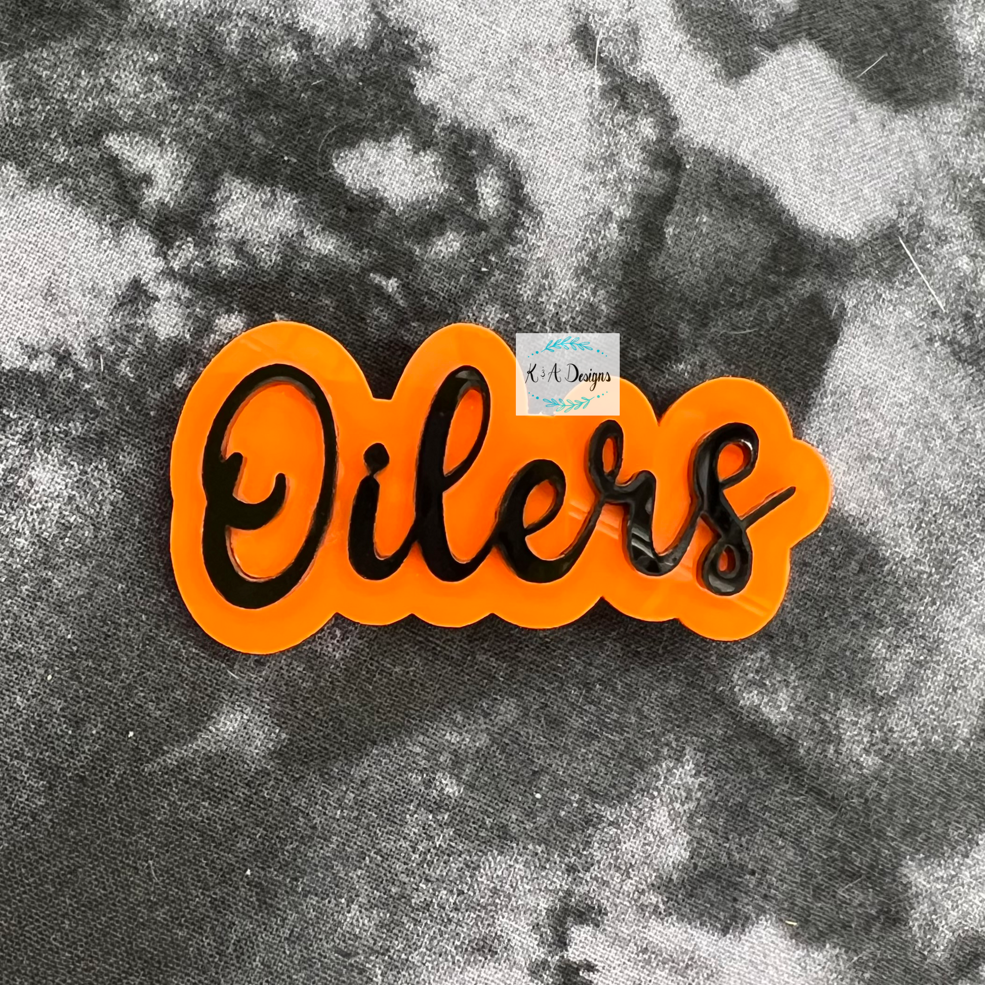 Main color is the background, accent color is the top. Made from 2 layers of acrylic, ~1/4” tall when finished. Due to monitor and screen differences, actual colors may vary.