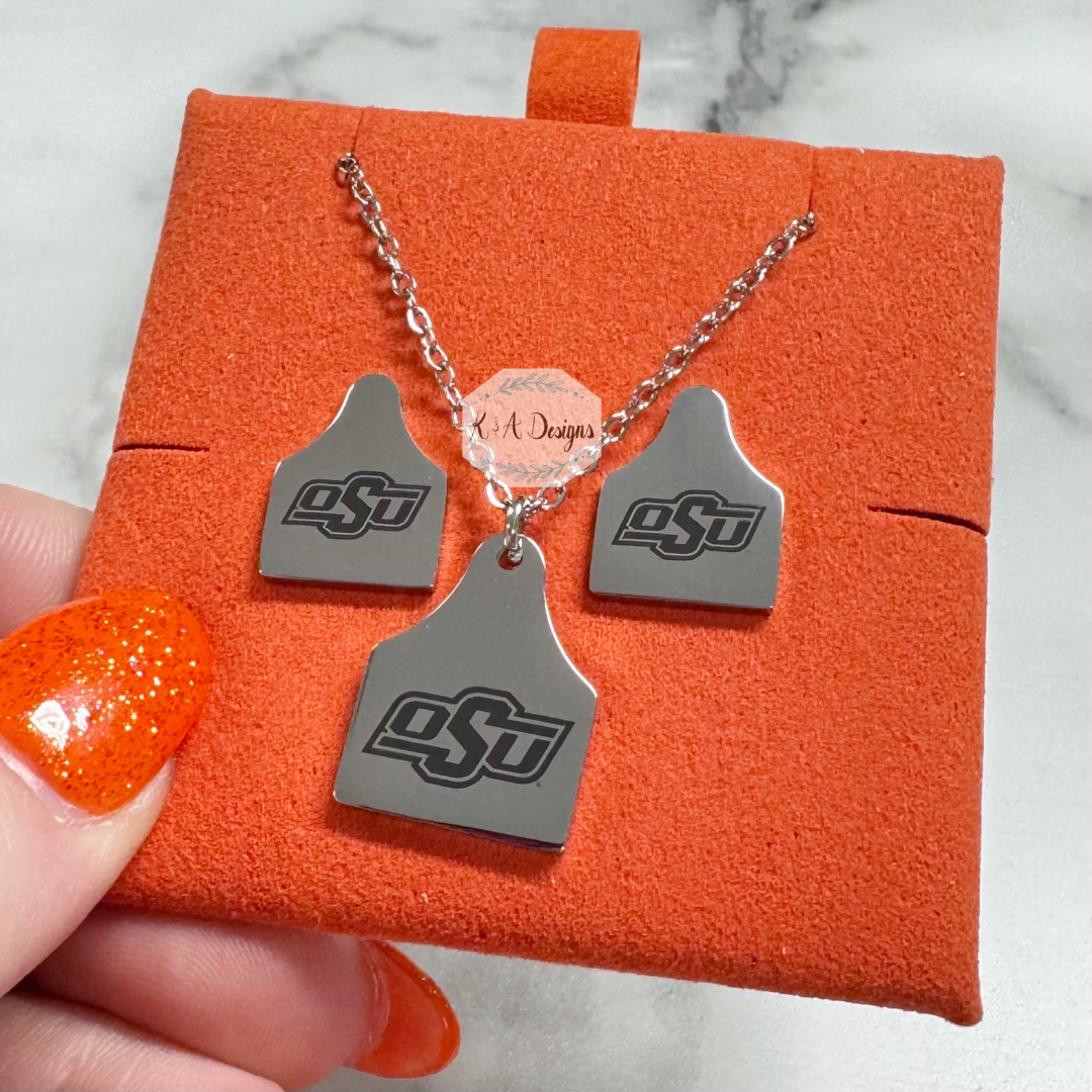 OSU® Cow Tag Necklace & Stud Earrings Bundle