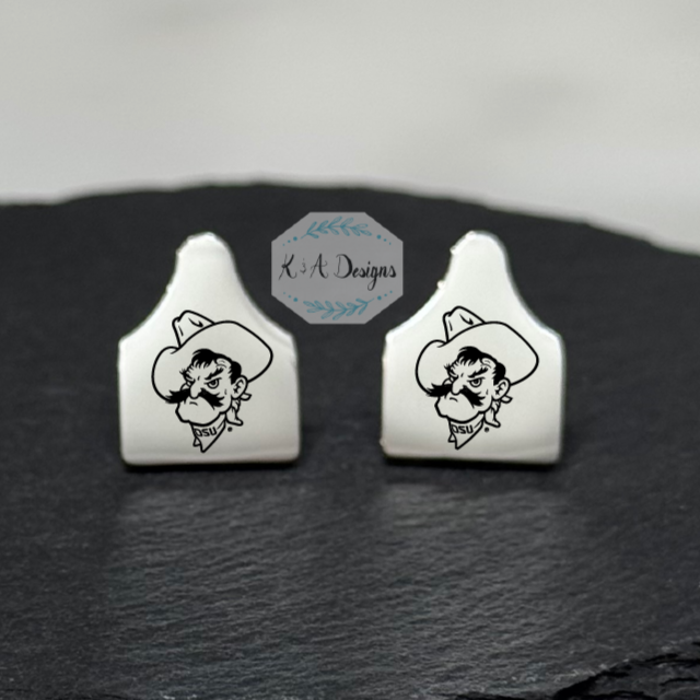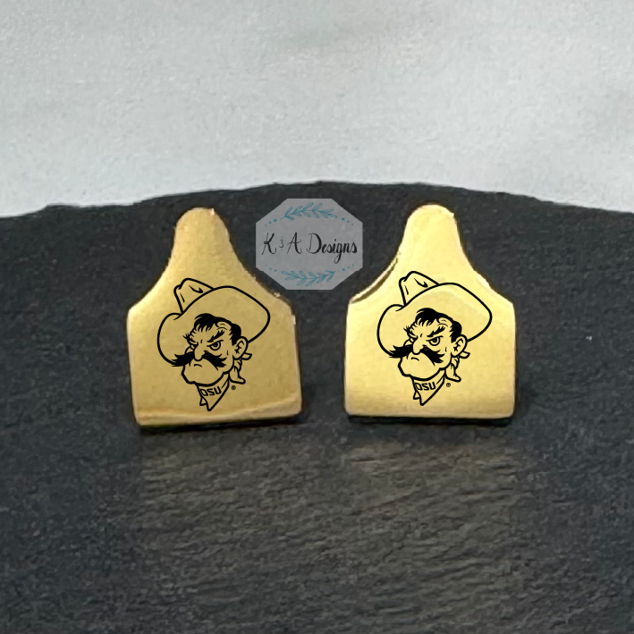 Pistol Pete's Mug Cow Tag Stud Earrings