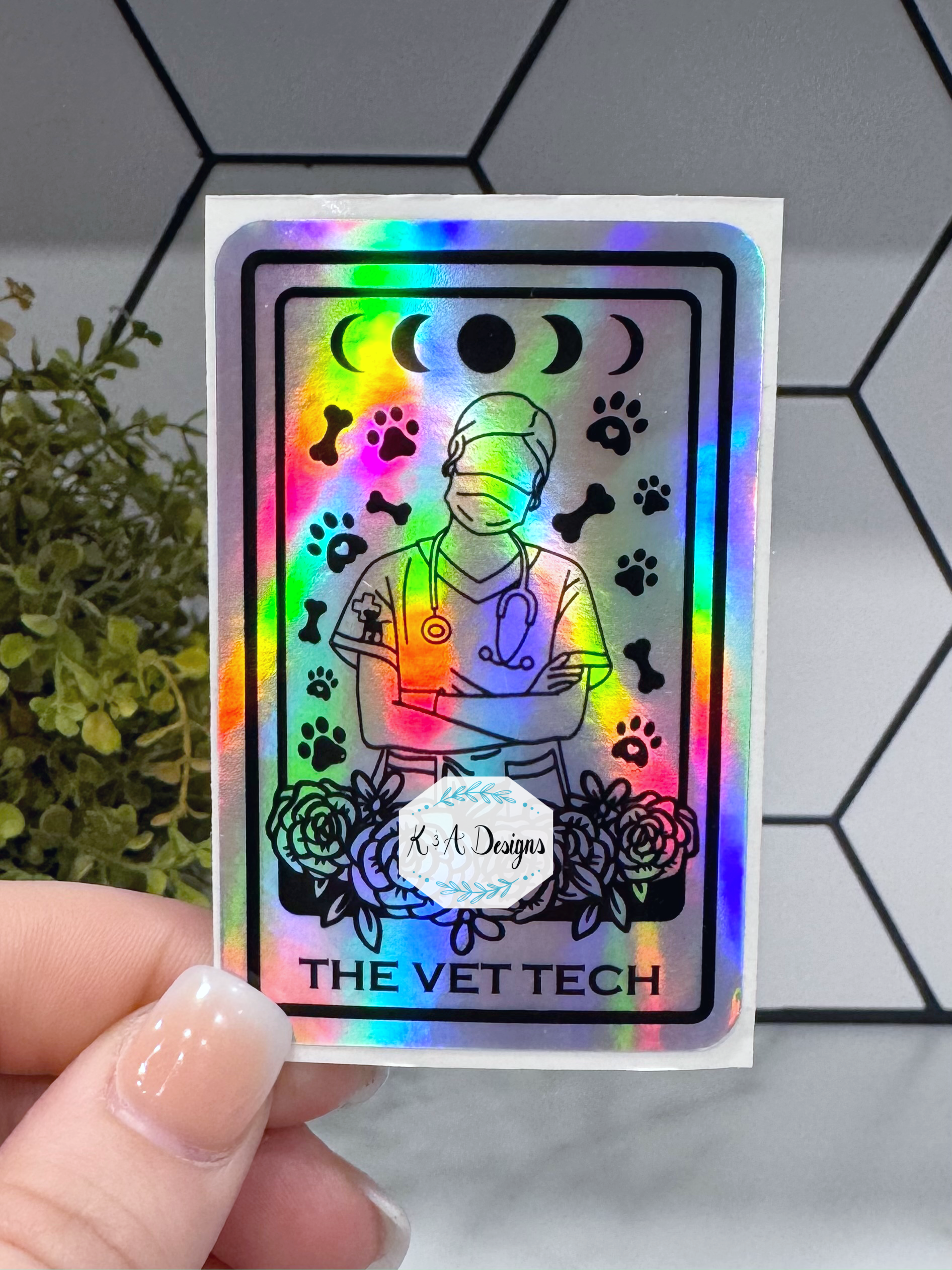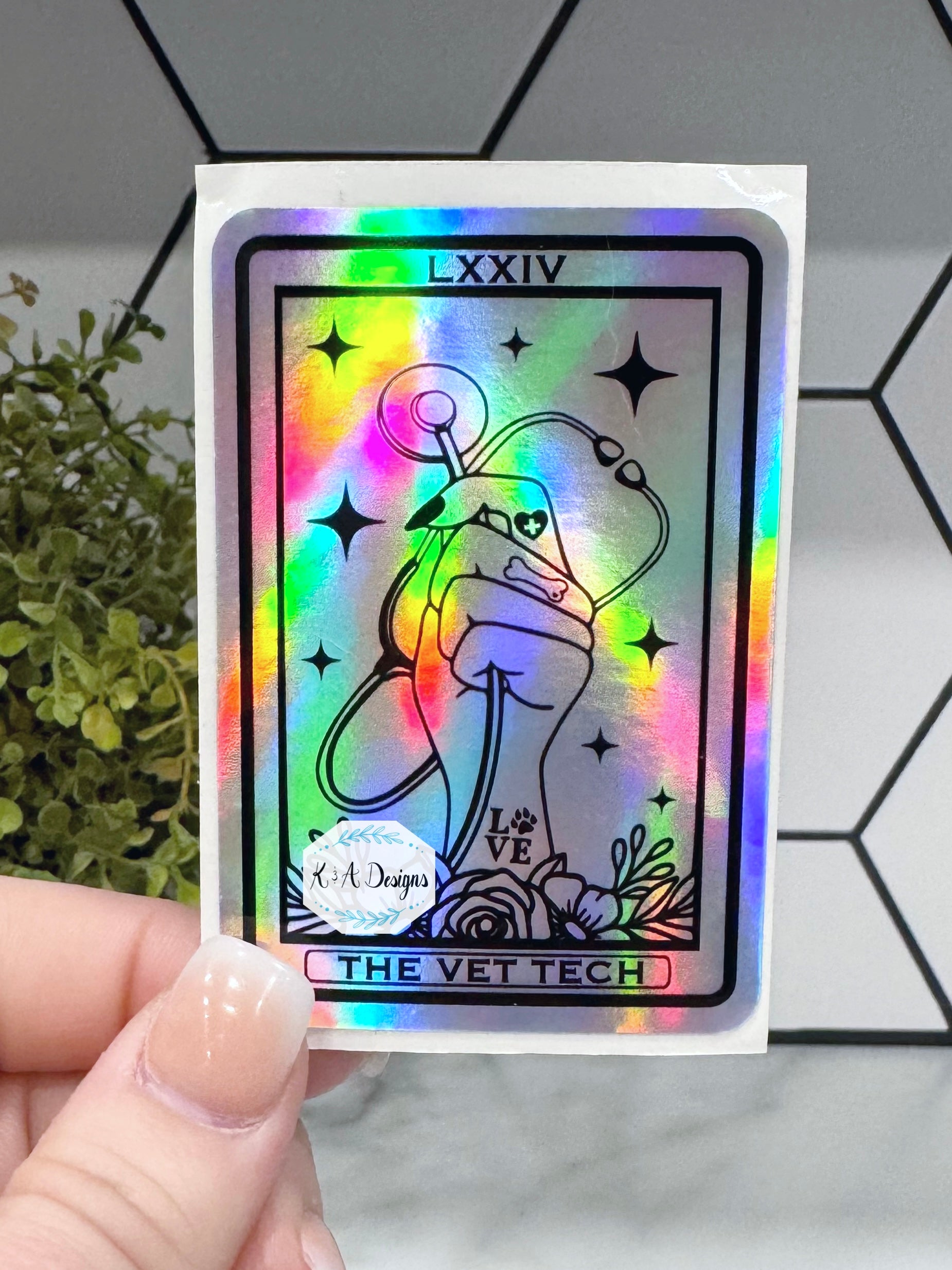 This waterproof vinyl sticker boasts a mesmerizing holographic design, perfect for adding a touch of vet med and mystical charm to any flat surface. It's durable and great for use on drinkware. Hand wash drinkware gently to preserve the sticker quality.